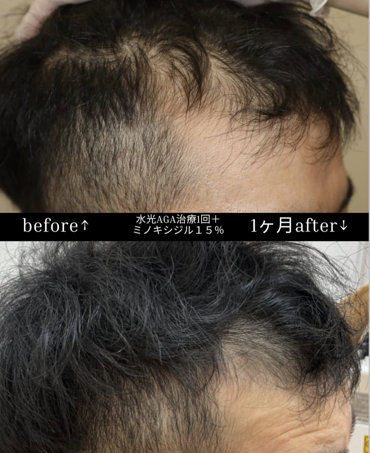 写真は※咲くらクリニックオリジナルカクテルの水光注射1回施術後、約1ヶ月後の経過。外用ミノキシジル15%を毎日自宅で塗布の症例。